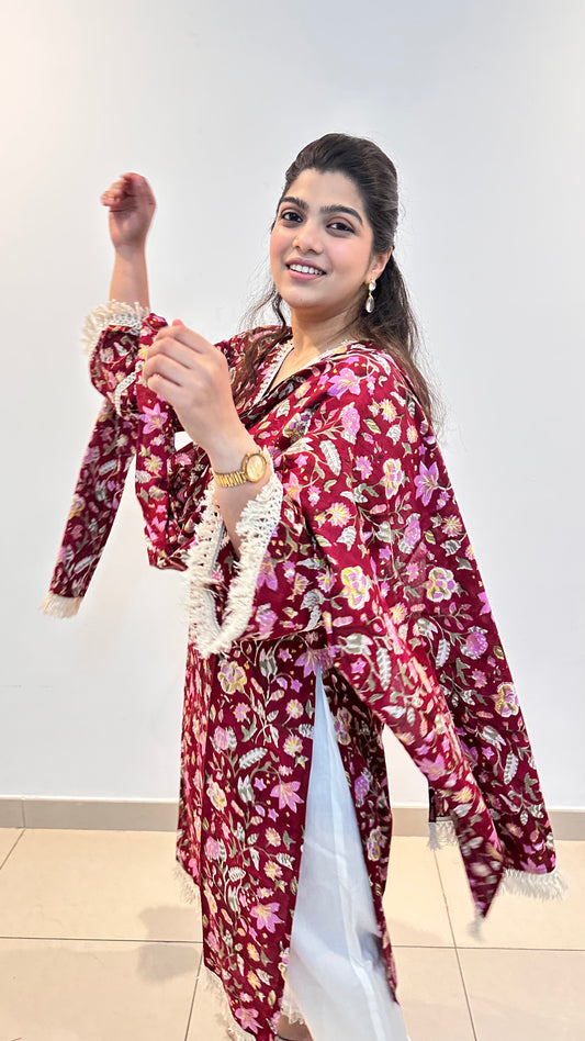 Ruhani – Cherry Red Sanganeri Block Print Cotton Suit Set