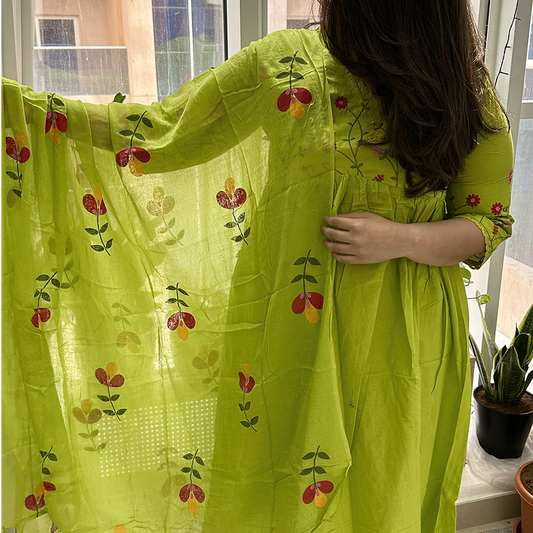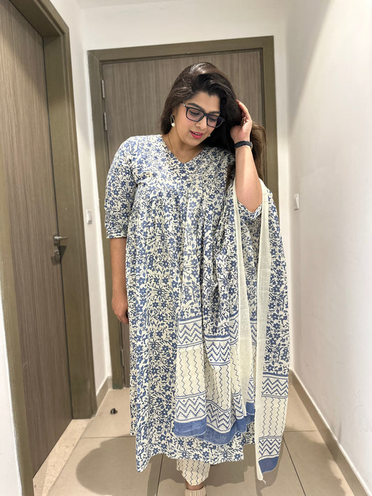 Gulnar - Sanganeri Block Print Cotton Kurta Set with MulMul Dupatta