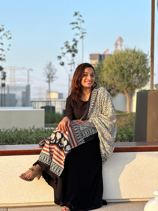 Nehrin - Solid Black Kurta Set with Cotton Dupatta