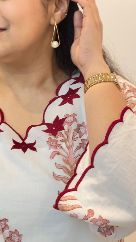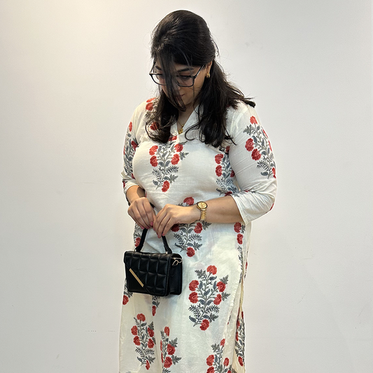 FINAL PRICE🌺 Zehra - Offwhite Red Petal Cotton Suit Set